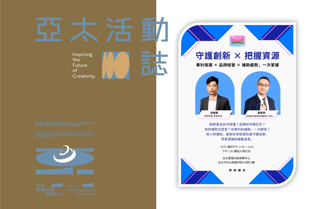 創新產品該怎麼保護?品牌要如何被記住?政府補助又該怎麼爭取?👉 從專利到補助,這場兩小時講座將一次解答!