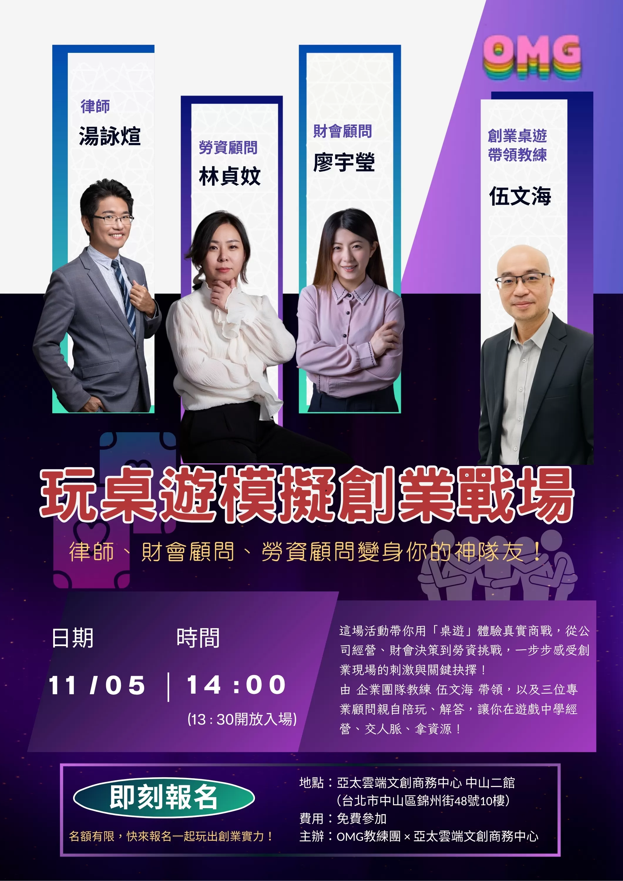 11/5【玩桌遊模擬創業戰場】OMG教練團-講座資訊分享