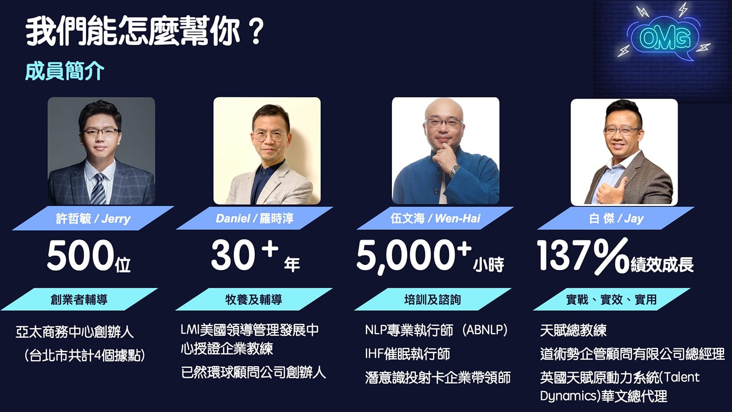 LMI美國領導管理發展中心授證企業教練,超過三十年教會牧會資歷,目前開辦已然環球顧問公司,從事企業與個人持續轉型與優化的企業教練。