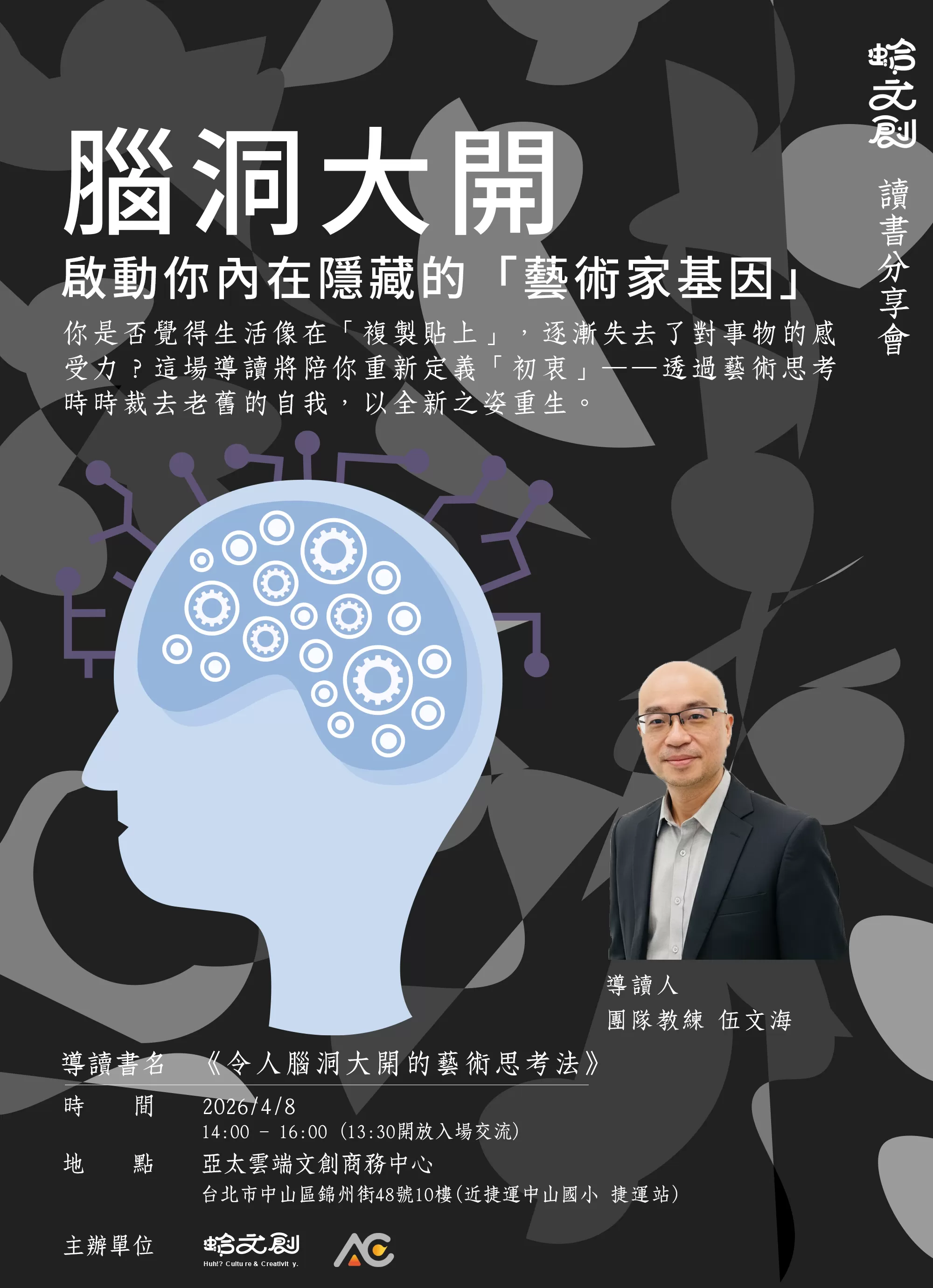 4/8『腦洞大開:啟動你內在隱藏的「藝術家基因」』 藝術思考導讀會📖 | 亞太台北商務中心推薦